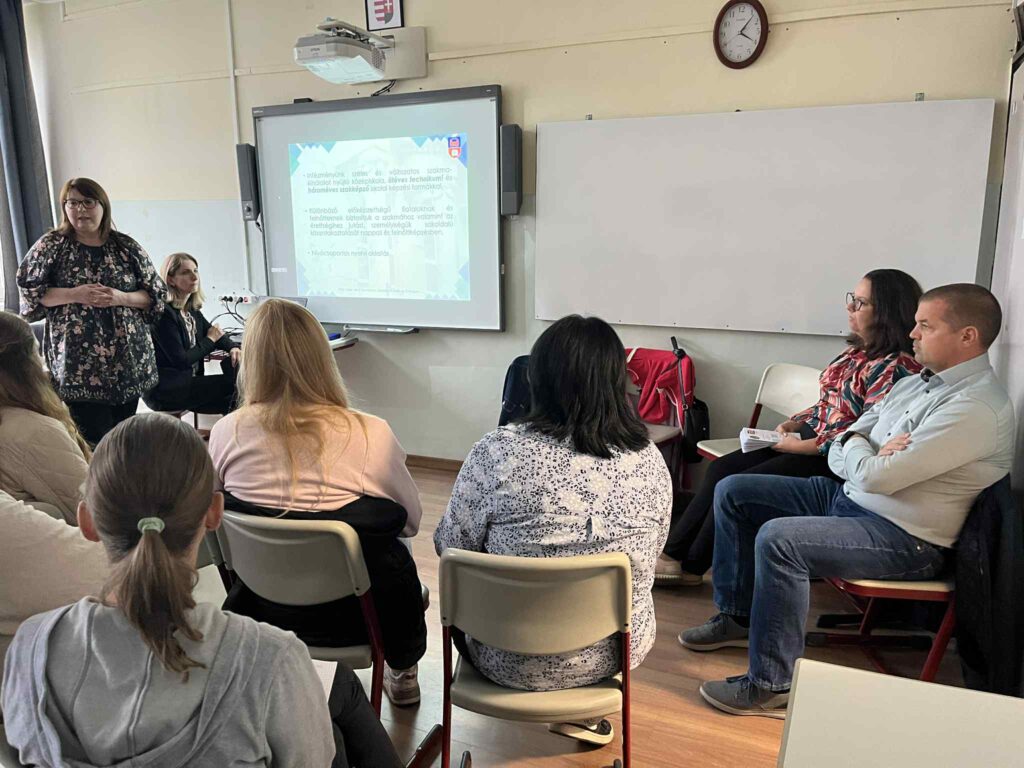 2025. szeptember 25-én pályaválasztási szülői értekezletet tartottak a 7-8. évfolyamos szülőknek és gyermekeiknek iskolánkban a meghívott középiskolák előadói. A nagy érdeklődésre számot tartó rendezvényen az Öveges József Technikum és Kollégium (Balatonfűzfő), a Pápai SZC Faller Jenő Technikum, Szakképző Iskola és Kollégium, a Thuri György Gimnázium és Alapfokú Művészeti Iskola, illetve a Veszprémi SZC Jendrassik-Venesz Technikum képviselői mutatták be intézményüket a vendégeknek. Köszönjük a tartalmas és hasznos előadásokat!