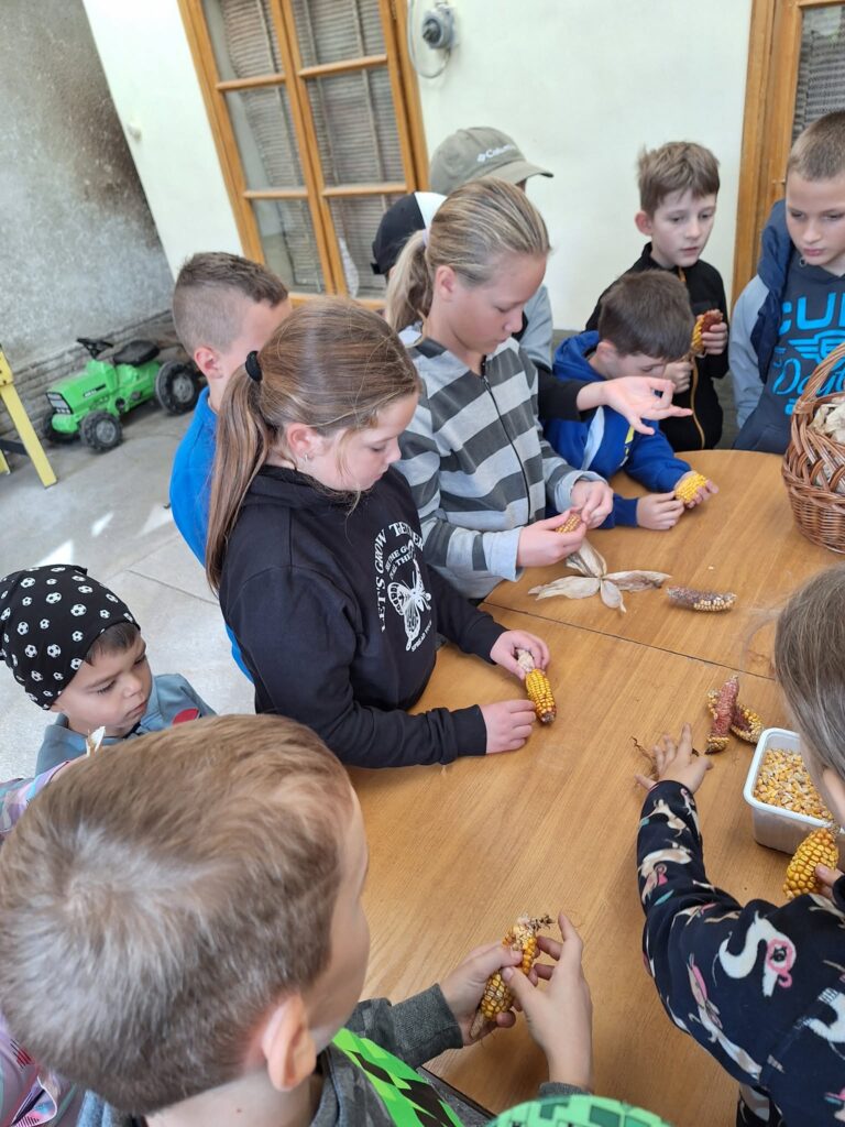 „Remekül éreztük magunkat Héninger Vivien mamájánál Berhidán, ahol kipróbálhatták a gyerekek a kukoricafosztást, a morzsolást. Megismerték a szemes takarmányokat, amivel maguk etették meg a baromfiudvar lakóit, és jó sok zöldet téptek a malackáknak is. Megetették a lovakat, akiknek a viselkedéséről is sokat tanultunk, tapasztaltunk. Lehetett szaladni a lófuttatóban, ahol a gyerekek nem fanyalogtak a trágya jelenléte miatt, mert megtudták, hogy az bizony igen hasznos a föld tápértékének javításához. Még uzsit is kaptunk, és jól telerajzoltuk az udvart. Készült egy közös élménymontázs a terem falára.