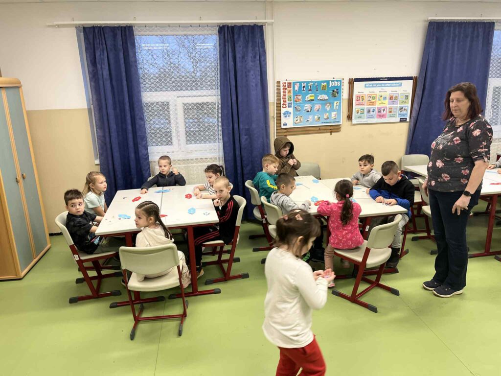 2026. február 2-án délután játékos, vidám, farsangi foglalkozást tartottunk a nagycsoportos óvodásoknak a leendő elsős tanítók, Csupeczné Horváth Réka és Héninger Ildikó vezetésével. Ez alatt a szülőknek általános tájékoztatást tartott az intézmény vezetője, Kőmives Judit.