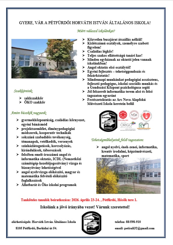 Szülői tájékoztató a 2026. évi beiratkozásról